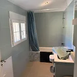 The holiday home has views of the garden. Bathroom facilities also include a bidet, a bath, and a separate toilet. There are hairdryers and bath sheets for guests' comfort.